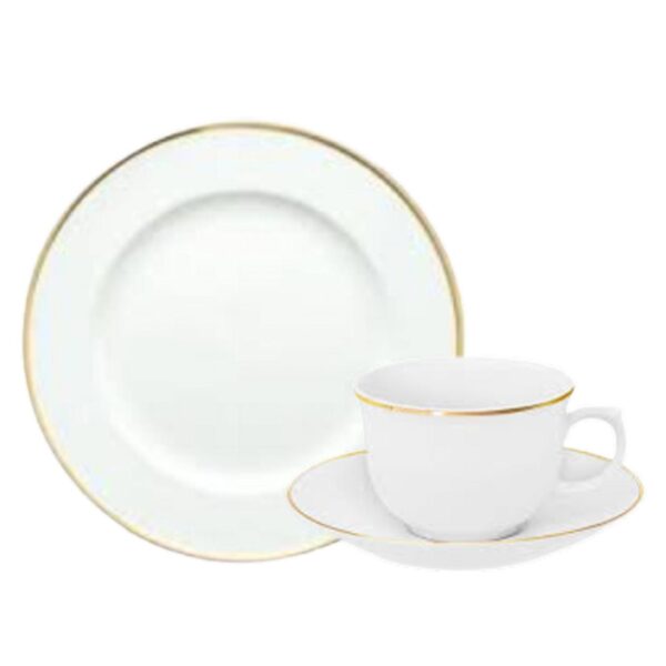 Aparelho de Jantar Chá 30pç Flamingo Sofia Ouro Porcelana Oxford