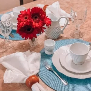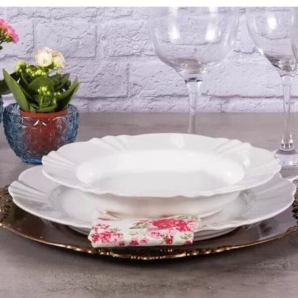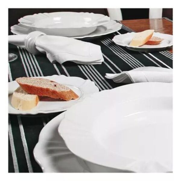 As 42 peças incluídas neste aparelho de jantar são verdadeiramente versáteis. Os pratos rasos, fundos e de sobremesa são projetados para acomodar desde as refeições cotidianas até ocasiões especiais. A forma e o tamanho de cada peça são perfeitamente equilibrados para proporcionar uma experiência gastronômica excepcional, transformando cada refeição em uma celebração de sabores.