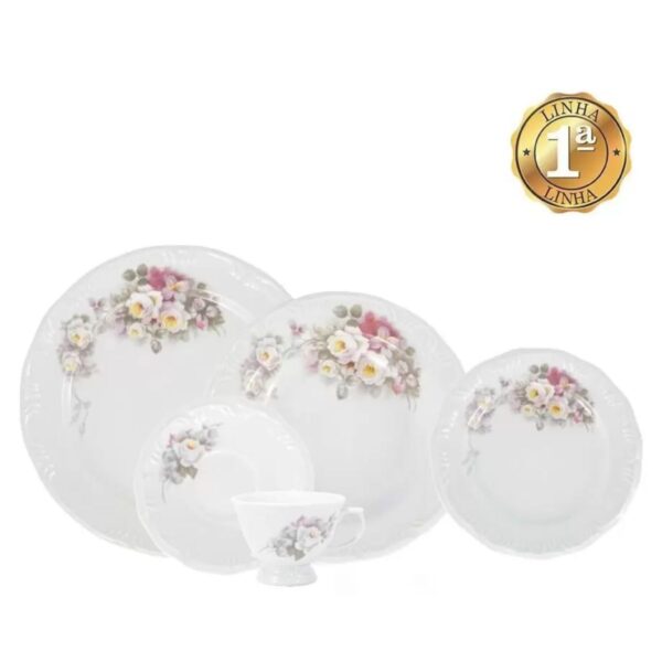 – Medidas: Prato Fundo 23 cm, Prato Sobremesa 19 cm, Prato Raso 26 cm, Xícara chá 200 ml