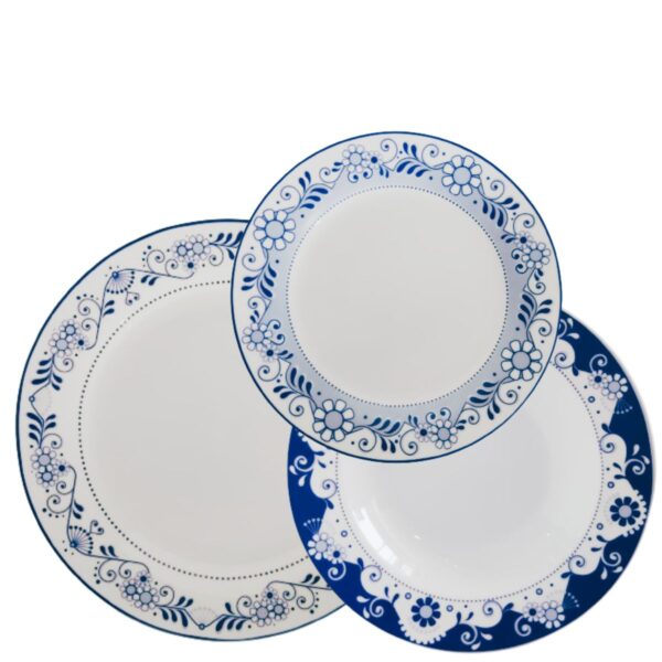 Aparelho de Jantar e Chá 42pçs Charming Azul Porcelana Borda Ouro L`Hermitage