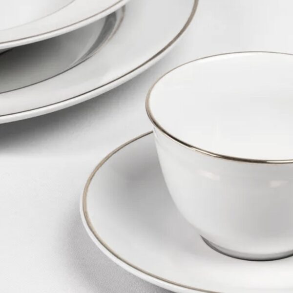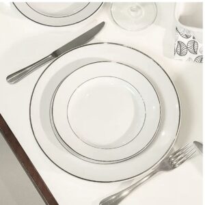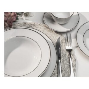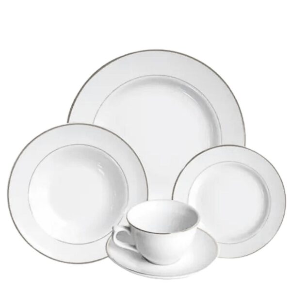 Aparelho de Jantar e Chá 20pçs Porcelana Branca Filete Prata Estaleiro