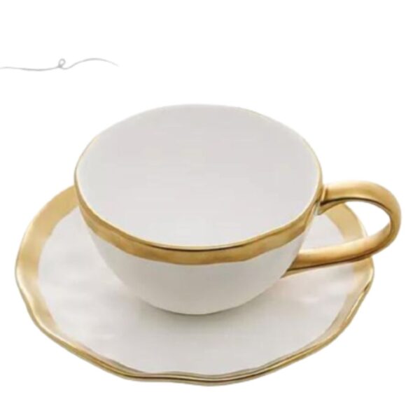 Aparelho de Jantar e Chá 24pç Porcelana Branca e Dourada Dubai Wolff