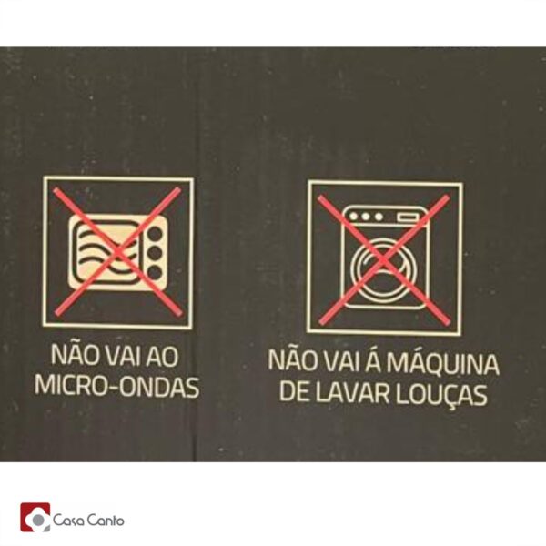 Utilizar sabão neutro e esponja macia para melhor conservação do produto. Não deve ser levado à máquina de lavar ou ao micro-ondas