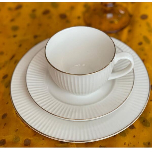 Feito com maestria e atenção aos detalhes, esse conjunto é uma verdadeira expressão de luxo e bom gosto. Com sua porcelana branca impecável, realçada por elegantes detalhes dourados, cada peça transmite um senso de sofisticação e beleza atemporal. Transforme sua mesa em um cenário de elegância e desfrute de momentos inesquecíveis ao saborear suas refeições com esse conjunto refinado. Uma combinação perfeita de estética e funcionalidade.