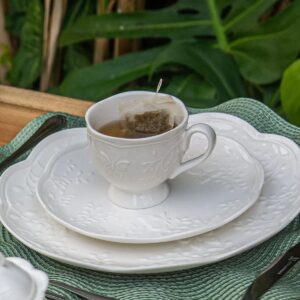 Chá ou Café: O conjunto inclui xícaras de chá de 200 ml e pires de chá, tornando-o perfeito para servir uma bebida quente após a refeição ou durante um momento de lazer com amigos e familiares. A delicadeza do design torna o conjunto ideal para ocasiões especiais ou para um uso diário refinado.