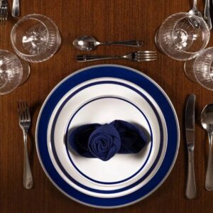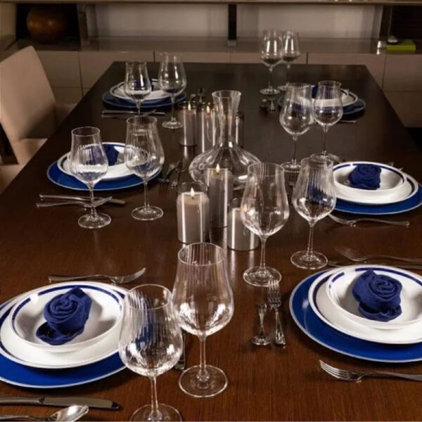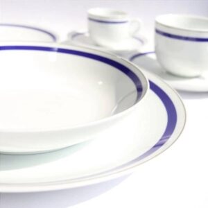 Transforme a composição de sua mesa com a elegância e o requinte do Aparelho de Jantar Très Classique em Porcelana Borda prateada e azul com 42 Peças da L’Hermitage!