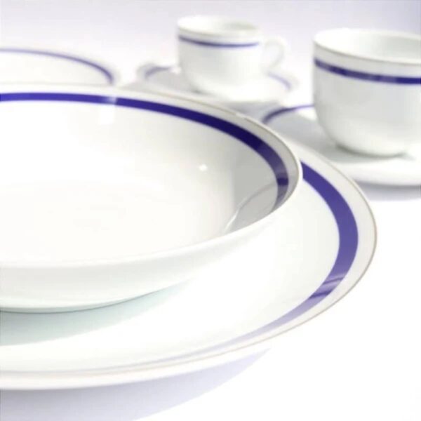 Aparelho de Jantar e Chá 42pçs Porcelana Silver Rim Azul L’Hermitage