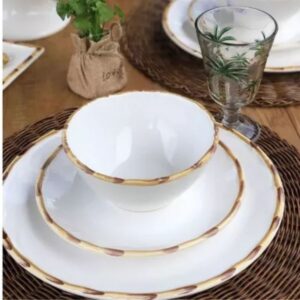 Aparelho de Jantar 48peças primeira linha borda bambu Scalla Cerâmica. - Produto composto :