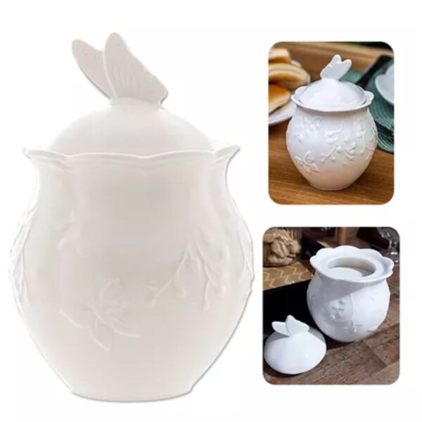 Açucareiro: Capacidade: 400 ml, Altura (com tampa): 13,5 cm, Diâmetro: 9,5 cm