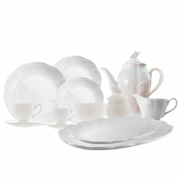 Aparelho de Jantar e Chá 53pçs Porcelana New Bone Butterfly Flower Lyor