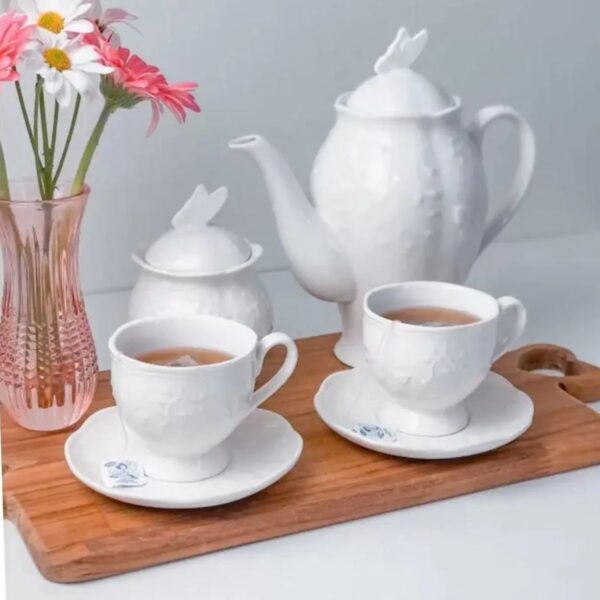 Chá ou Café: O conjunto inclui xícaras de chá e xícaras de café, ideais para momentos de relaxamento após as refeições. O bule de 1 litro e a molheira de 200 ml complementam perfeitamente os momentos de chá, oferecendo praticidade e estilo ao servir suas bebidas. O açucareiro completo ainda proporciona a conveniência de adoçar suas bebidas com elegância.