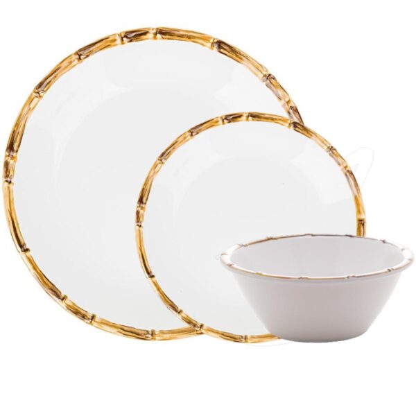 Aparelho de Jantar Melamina Branca Bambu 18pç BonGourmet