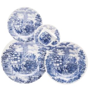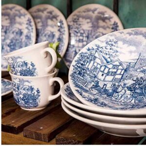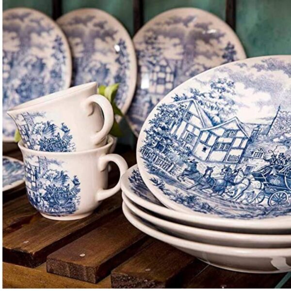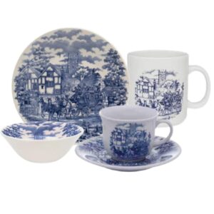 Aparelho de Jantar e Chá 42pçs Charming Azul Porcelana Borda Ouro L`Hermitage