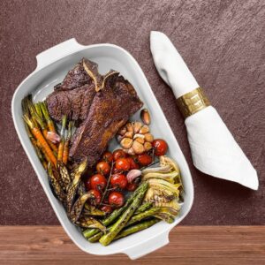 Porcelanas refratárias eficientes para assar e que vão direto do forno para mesa sem perder o charme e a personalidade.Bastante resistentes tem a medida da Travessa interna sem as abas: 01 un Travessa 30x21x7cm e capacidade de 2,75lt