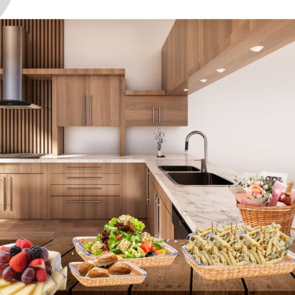 Desde refeições principais até sobremesas, essas travessas juntamente com o suporte de rattan serão aliados essenciais na sua cozinha para impressionar seus convidados ou para desfrutar de pratos deliciosos com sua família.