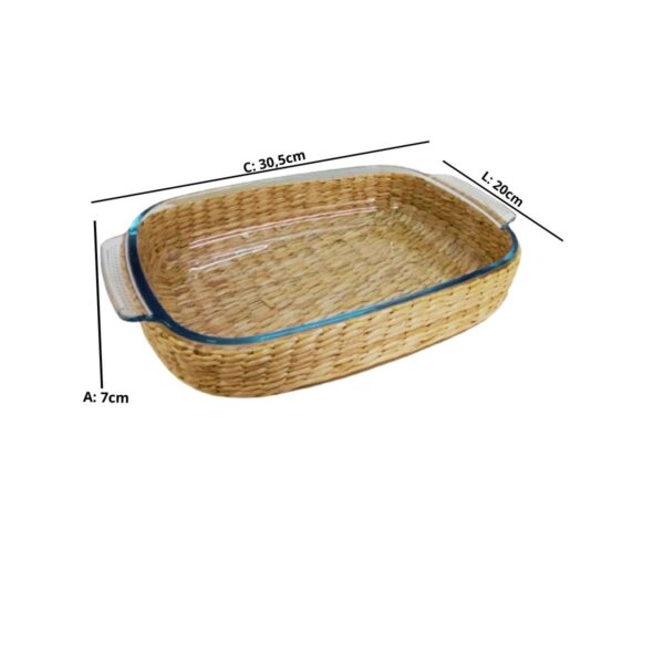Tipo: Travessa Retangular com Alça e Suporte de Rattan