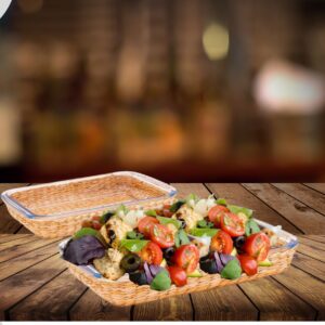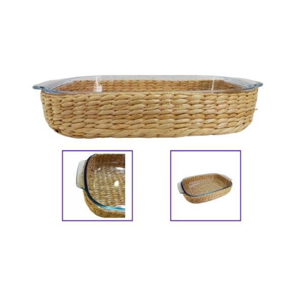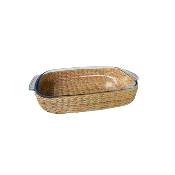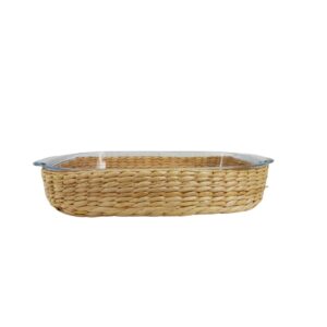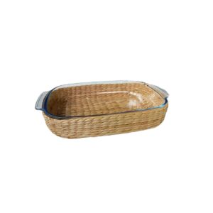 Feita com vidro de alta qualidade e um suporte de rattan durável, esta travessa combina beleza e resistência.