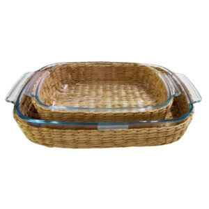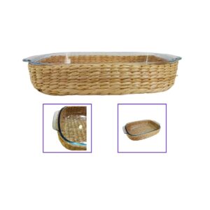 O suporte de rattan é outro elemento que aprimora a funcionalidade do conjunto. Além de servir como uma base estável para as travessas e assadeiras, também adiciona um toque de charme e elegância à apresentação das refeições. O rattan é um material resistente, leve e de fácil manutenção, o que o torna ideal para uso na cozinha.