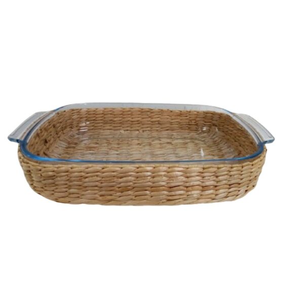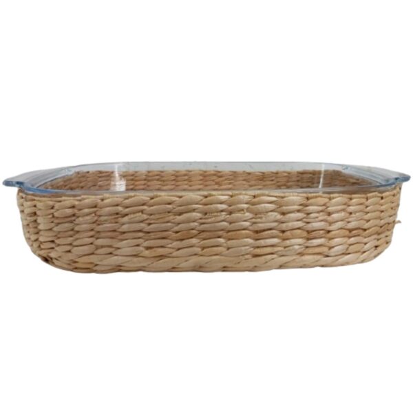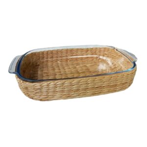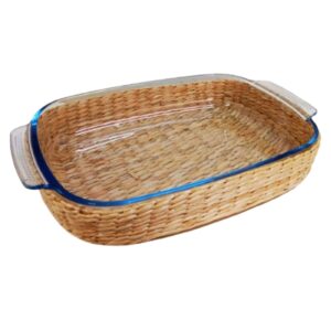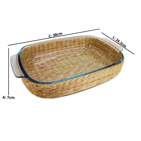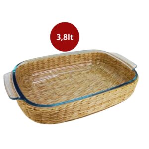 Assadeira e Travessa Vidro 38x26x7cm e 3,8lt Alça e Suporte Rattan