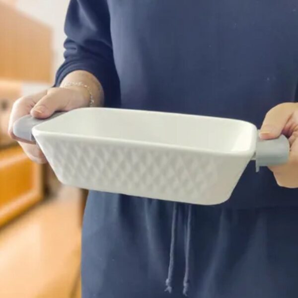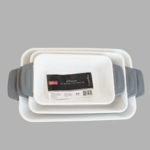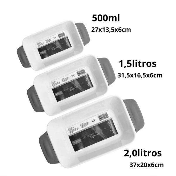 Assadeiras e Travessas Retangulares Branca com Alça Silicone 3pçs Lepontine