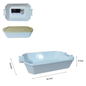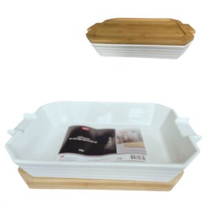 Assadeira/Travessa Branca com Tampa de Bambu Galway- 1 Unidade 31x19x6 cm