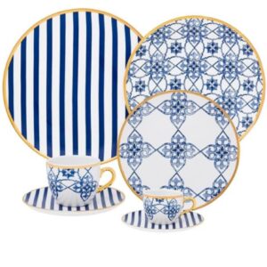 CONTEÚDO DA EMBALAGEM – 6 Pratos Rasos de 28cms, 6 Pratos Fundos de 24cms, 6 Pratos de Sobremesa de 21cms, 6 Xícaras Chá de 200ml c/ 6 Pires ,6 Xícaras café e 6 Pires de 75ml, 02 Travessas de 31cms cada, 02 Saladeiras de 26cms cada, 02 açucareiro de 200ml cada, 01 Bule de 1200ml, 01 Leiteira. Não vai à Lava Louças e não vai ao Microondas.