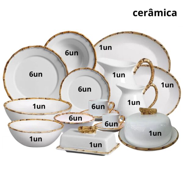 Baixela Serviço Jantar Linha Bambu 56pç Cerâmica Scalla-Primeira Linha
