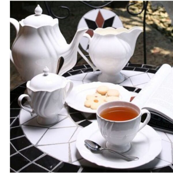 Baixela Serviço Jantar Soleil White 50pç Porcelana Oxford – Composiçao: 6 Pratos Rasos de 29cms, 6 Pratos Fundos de 24cms, 6 Pratos Sobremesa de 23cms, 6 Xicaras de Chá de 200ml,6 pires, 6 Xicaras de Café de 75ml e 6 pires, 2 Travessas de 42x30cms, 2 Saladeiras de 2000ml, 1 Sopeira de 4000ml, 1 Leiteira,de 750ml,1 Açucareiro,1 Bule de 1200m.