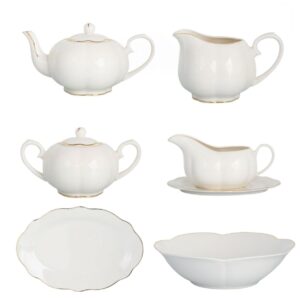 Baixela Servir Travessa Bule,Leiteira,Açucareiro 6pç Camelia Fio Ouro L`Hermitage