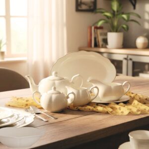 Feito de New Bone China, um material conhecido pela sua alta resistência e brilho suave, este aparelho é durável e delicado ao mesmo tempo. A qualidade da porcelana proporciona peças leves, com um acabamento liso e translúcido, além de garantir durabilidade para o uso diário ou em ocasiões especiais.