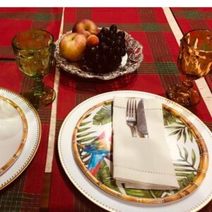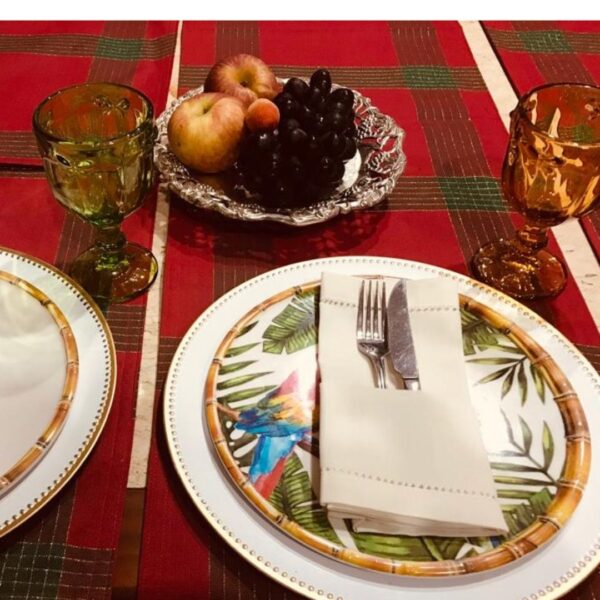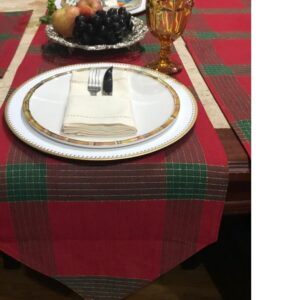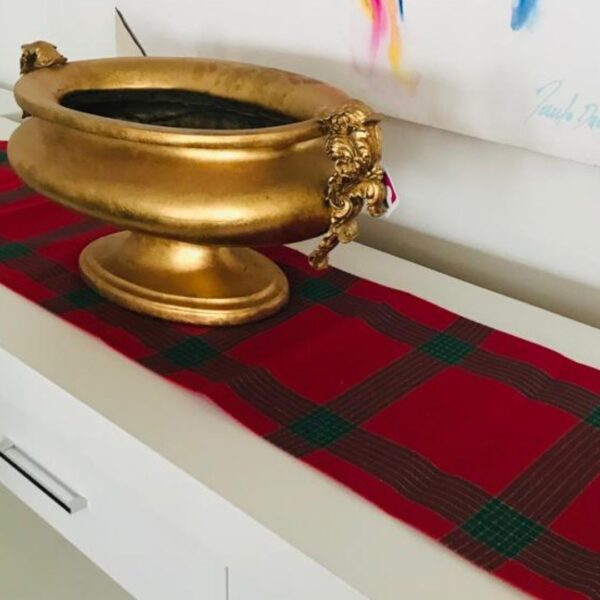 Caminho de Mesa de Tecido Xadrez com Fio Dourado Natal 2.20×0.36cm podendo ser utilizado na mesa como americano