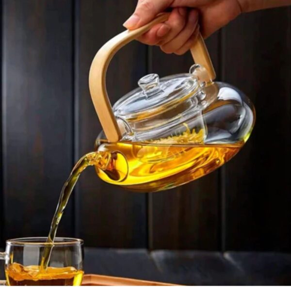 Fabricada com vidro borossilicato de alta qualidade, esta chaleira é resistente a altas temperaturas, tornando-a ideal para o preparo de chás quentes. Sua transparência permite que você aprecie a dança das folhas de chá durante o processo de infusão.