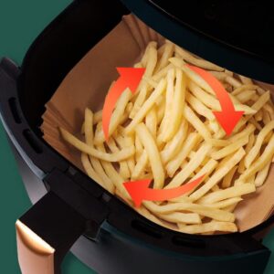 O principal benefício dessas formas de papel é a conveniência de não precisar lavar a Air Fryer após o uso. Basta descartar a forma usada e substituí-la por uma nova, mantendo o interior do aparelho limpo e livre de resíduos, o que economiza tempo e esforço na manutenção diária.