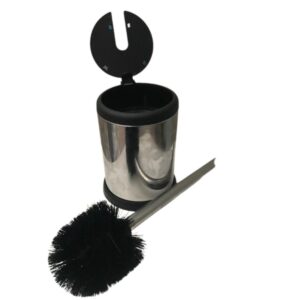 A escova sanitária da Lyor possui um sistema higiênico de abertura e fechamento sem contato. Basta remover a escova da base pelo cabo e, ao retorná-la para o suporte, a tampa será fechada automaticamente, sem necessidade de manuseio direto.