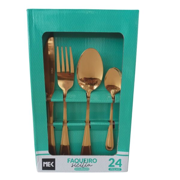 Faqueiro 24 Pcs Aco Inox Sicilia Dourado Gold Mek