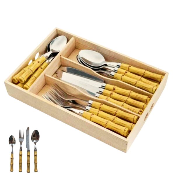Faqueiro Bambu Aço Inox 24pç com Caixa Bon Gourmet