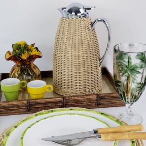 Garrafa Térmica Aço Inox Revestida com Rattan Fibra Plastica Bege 1,5L Bon Gourmet