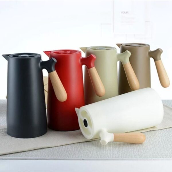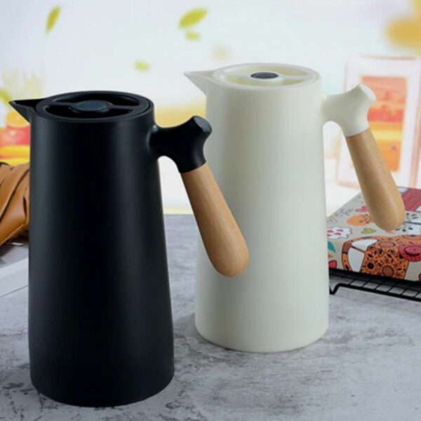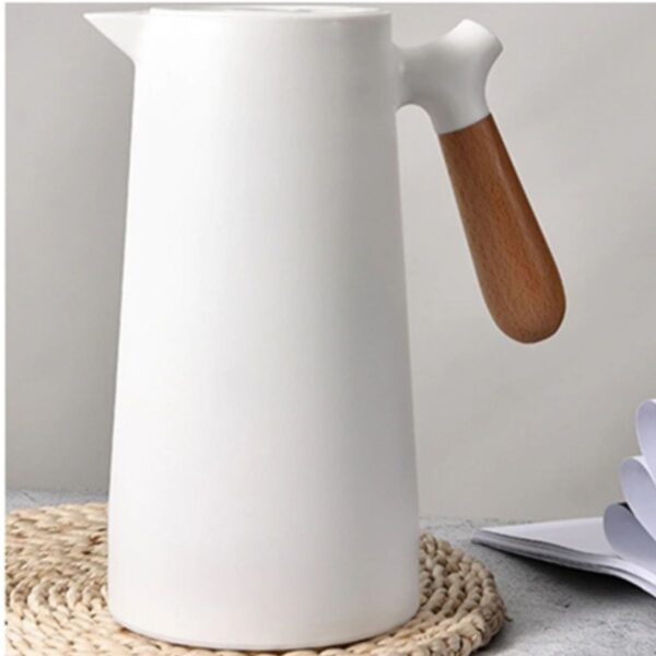 Garrafa Térmica Nordica Branca com Ampola e Cabo Madeira 1lt. Wolff