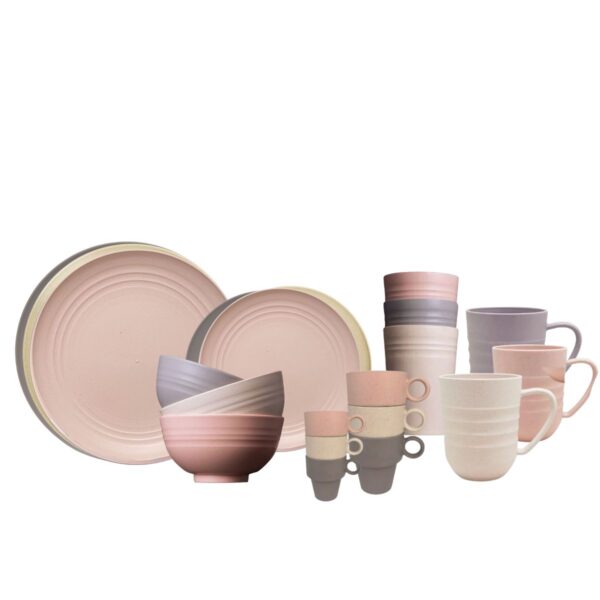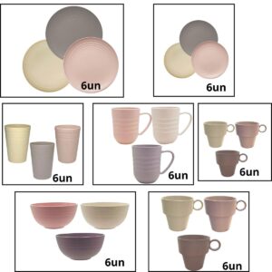 Este Jogo de Pratos Rasos, Sobremesa ,Bowls e Xícaras é ideal para servir refeições em casa para toda a família onde precisamos de praticidade,leveza, beleza. Sua construção em bambu e plástico polipropileno o tornam super prático, podendo ser usado tranquilamente pelas crianças. Possui design moderno, com sutis linhas texturizadas em sua parte superior que agregam um toque de sofisticação. A versatilidade deste prato permite que ele seja utilizado em outros cenários, como para arrumar a mesa de doces em uma festa de aniversário.Ideal para fazendas, festas ao ar livre, piscina , churrasqueiras.