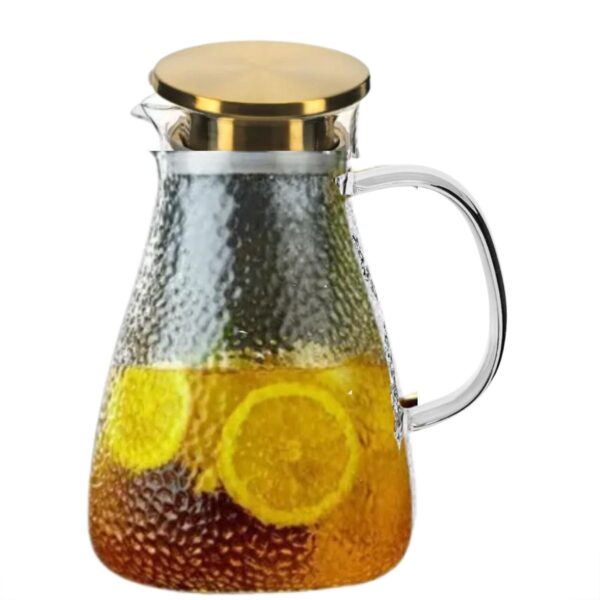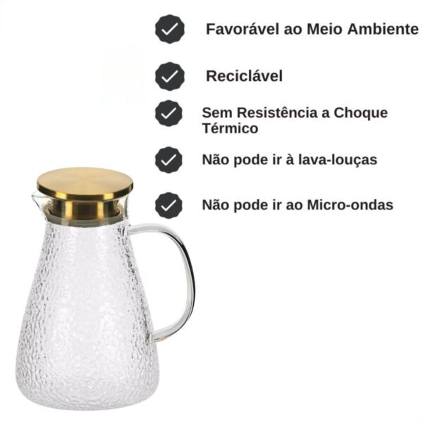 A jarra é feita de vidro borossilicato um material que garante durabilidade e resistência excepcionais. Além disso, o vidro borossilicato é conhecido por sua capacidade de resistir a mudanças bruscas de temperatura, tornando esta jarra adequada para bebidas quentes e frias. Sua tonalidade ouro branco confere um toque de luxo e sofisticação à mesa, tornando-a uma peça de destaque em qualquer ambiente.
