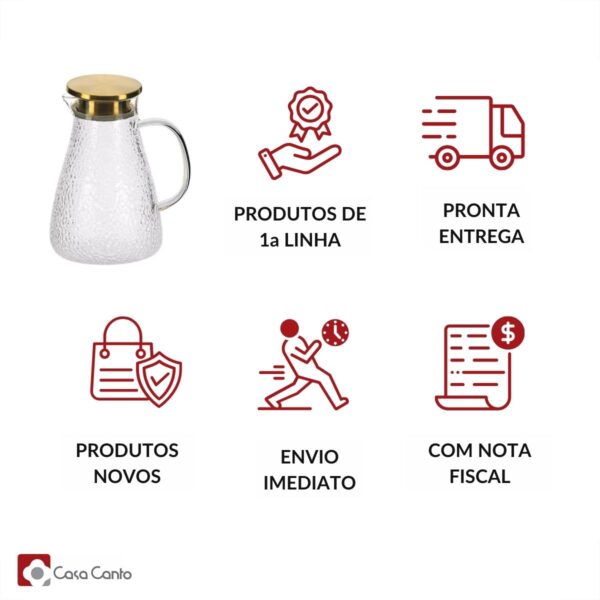 Facilidade de Uso: A tampa é projetada para ser de fácil manuseio. Ela pode ser removida e colocada de volta com facilidade, permitindo que você sirva suas bebidas de forma rápida e conveniente. Além disso, o fechamento hermético assegura que não haverá vazamentos ou derramamentos acidentais durante o armazenamento ou transporte da jarra.