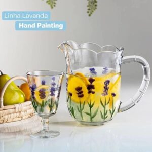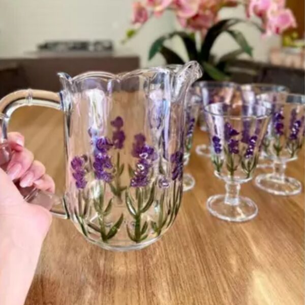 Jarra e Taças Cristal de Chumbo Lavanda 1,3litros/240ml Lyor