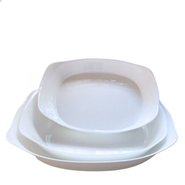 Este conjunto inclui três travessas de vidro opalino em tamanhos diferentes, oferecendo a você opções para acomodar desde porções maiores até porções individuais. Os tamanhos variam para atender às diferentes necessidades culinárias.