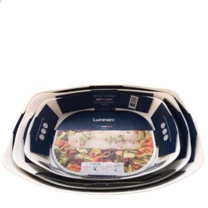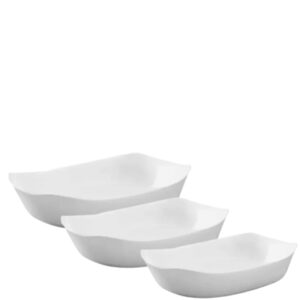 Jogo com 3un Assadeiras Travessas de Vidro Brancas Grandes p/ Forno Carine