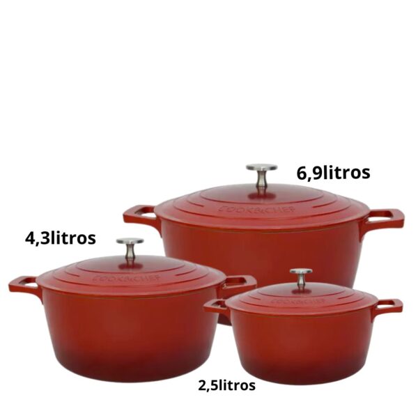 Panelas Caçarolas Cerâmica 3 peças 4mm Indução Vermelho Chef Florença