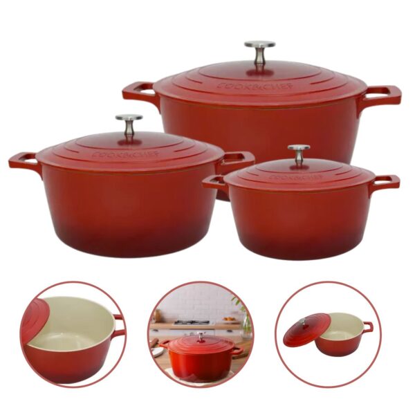 • Oferta Panelas Caçarolas Cerâmica 3 peças 4mm Indução Vermelho Chef Florença