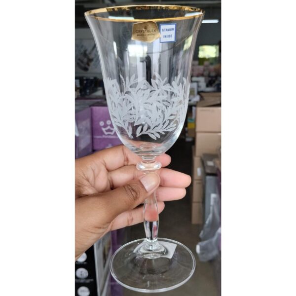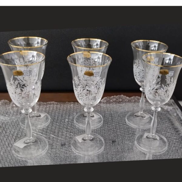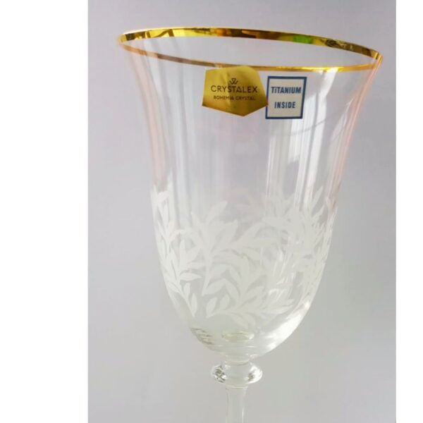 Jogo de Taças Cristal Agua e Vinho Lapidado e Decorado Ouro Angela 350ml Bohemia