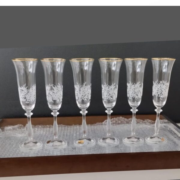 Jogo de Taças Cristal Champanhe Lapidado e Decorado Ouro Angela 190ml Bohemia