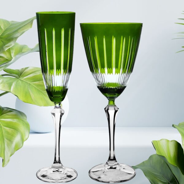 Jogo de Taças Cristal Lapidadas Elizabeth Verde 2un Bohemia