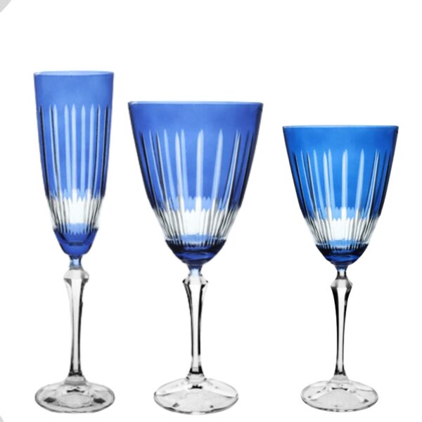 Jogo de Taças Cristal Lapidadas Elizabeth Azuis 18un Bohemia